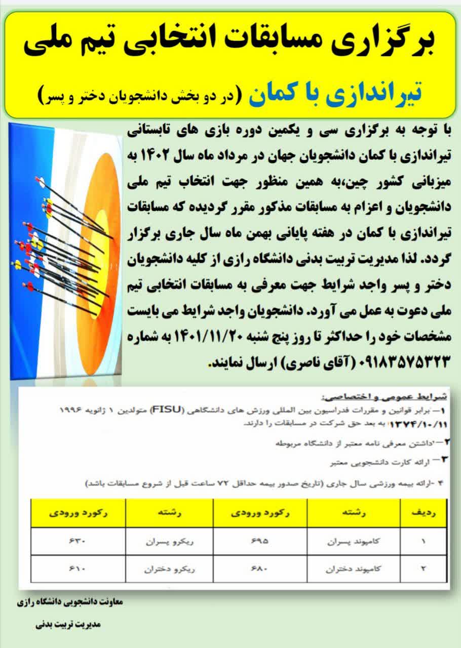 851 مدیریت تربیت بدنی دعوت به عمل می آورد: تکمیل تیم های شنا، واترپلو، هندپلو و نجات غریق مدیریت تربیت بدنی دانشگاه رازی جهت تکمیل تیم های شنا، واترپلو، هندپلو و نجات غریق دانشگاه و اعزام به...