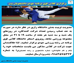 757 برگزاری کلاس فوق برنامه جودو دانشجویان پسر ذخیره ادرس در حافظه موقت لینک کوتاه: