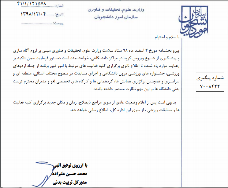 برگزاری مسابقات قهرمانی مجازی و آنلاین دانشجویان دختر و پسر دانشگاه ها و موسسات آموزش عالی کشور - تابستان ۱۴۰۰
